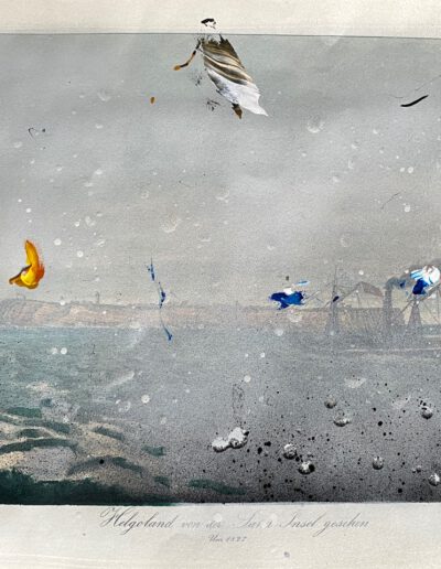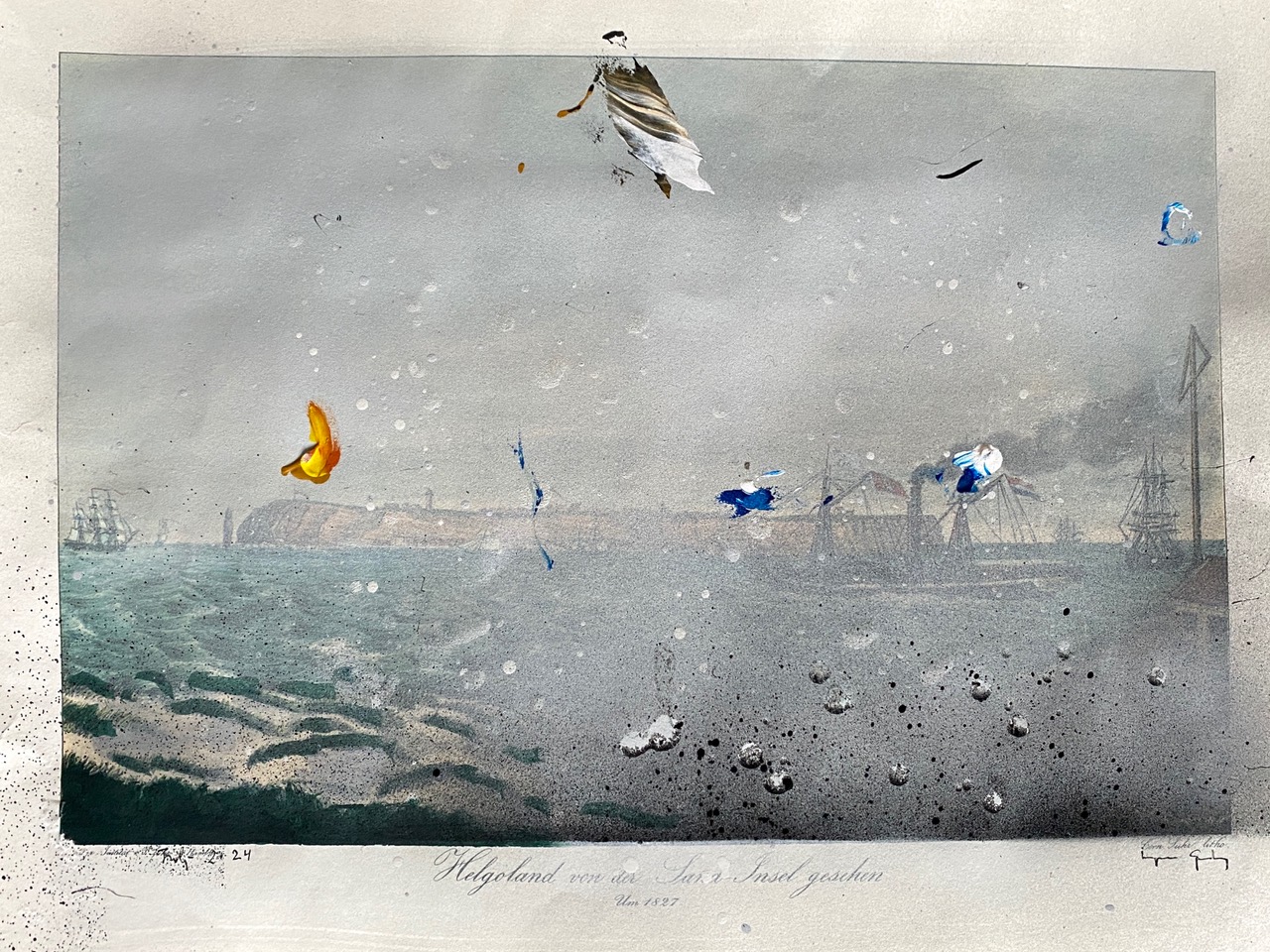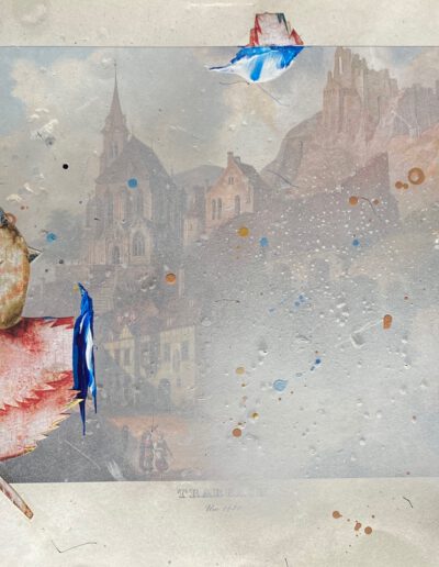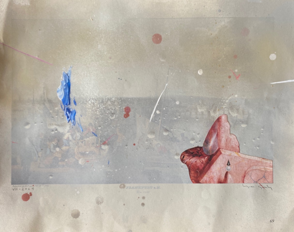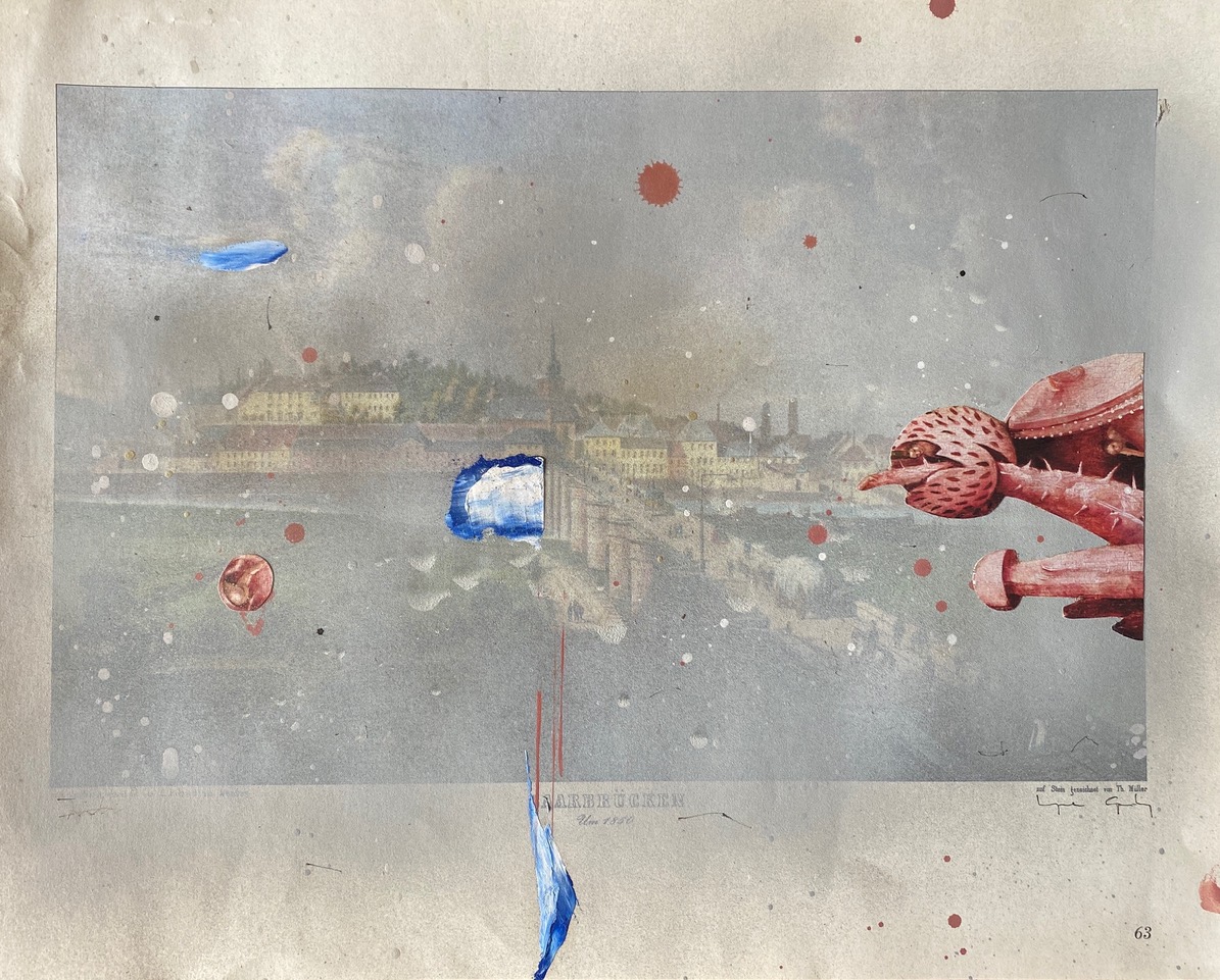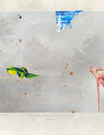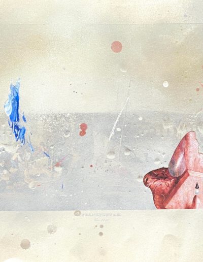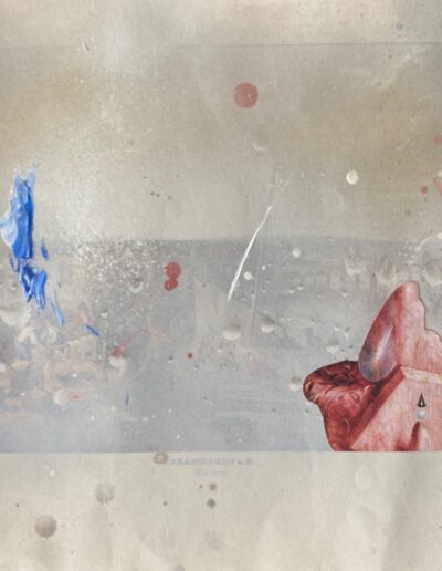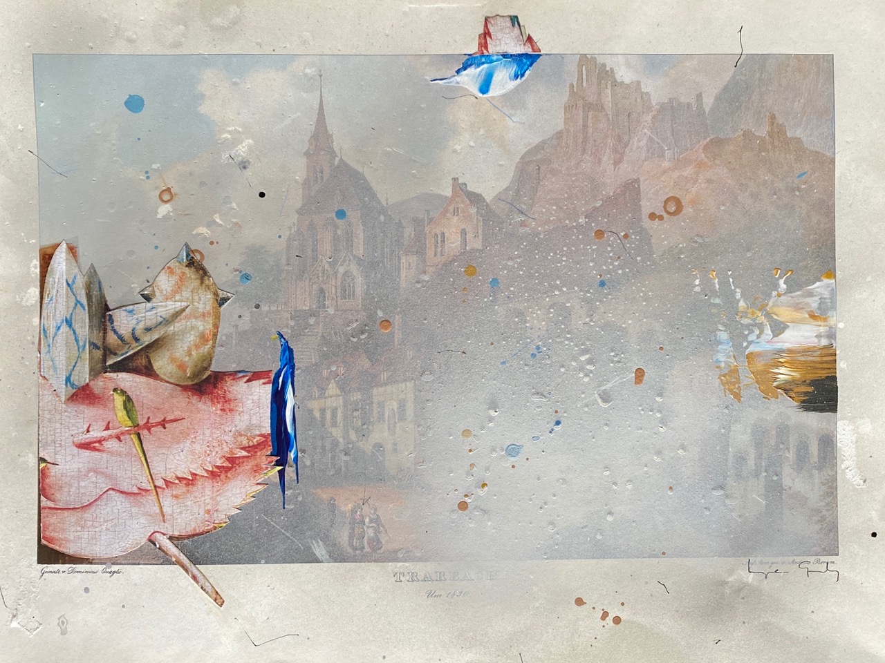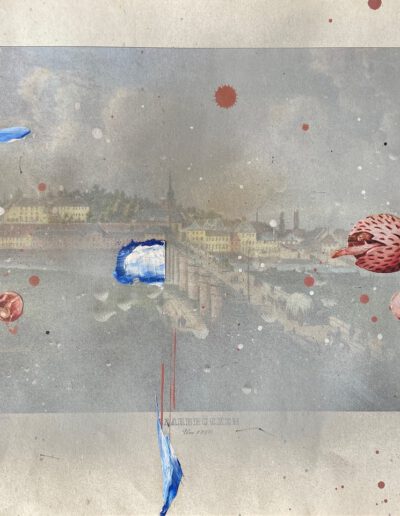 Mixed media on printed paper, 30 x 38 cm.