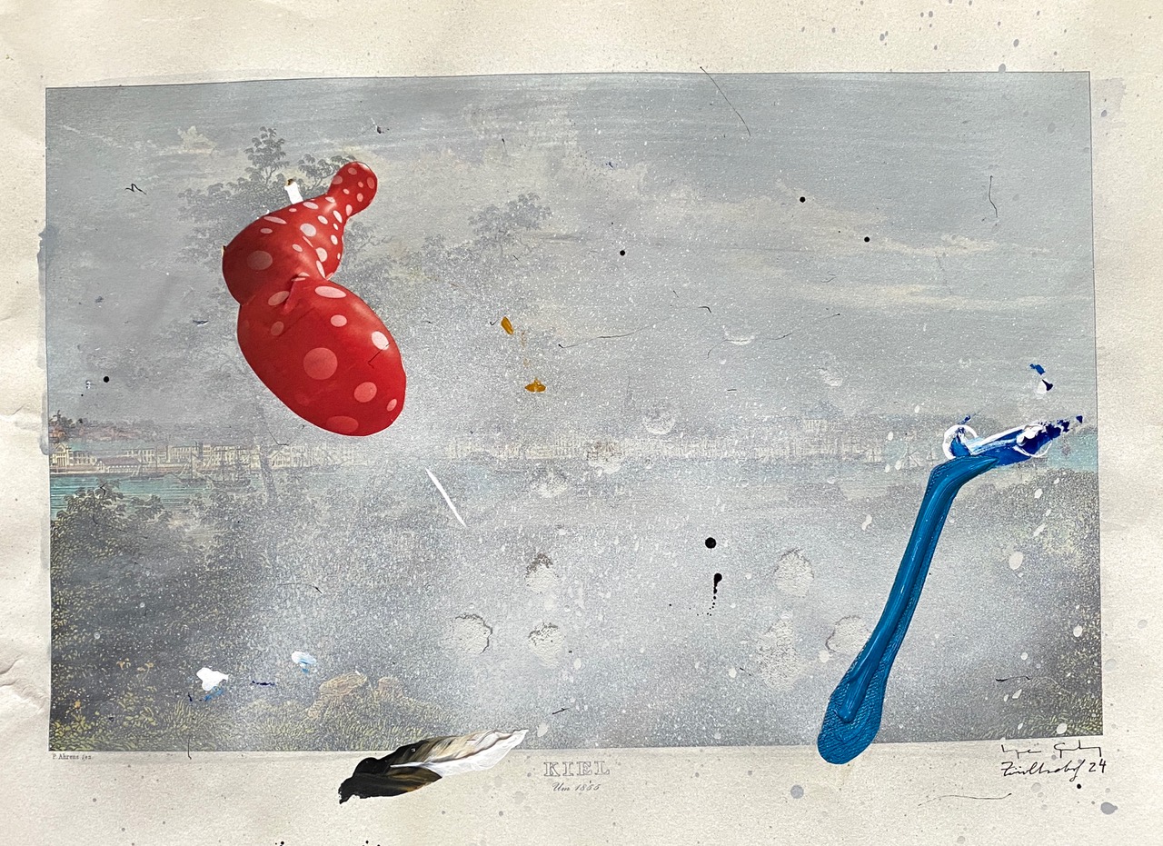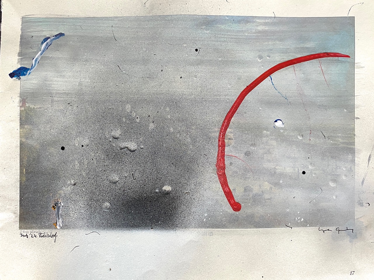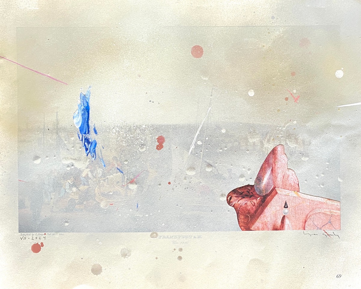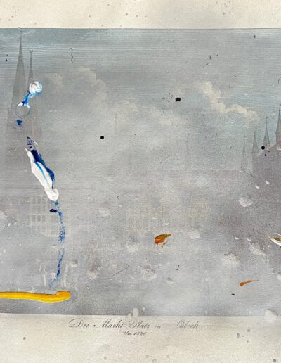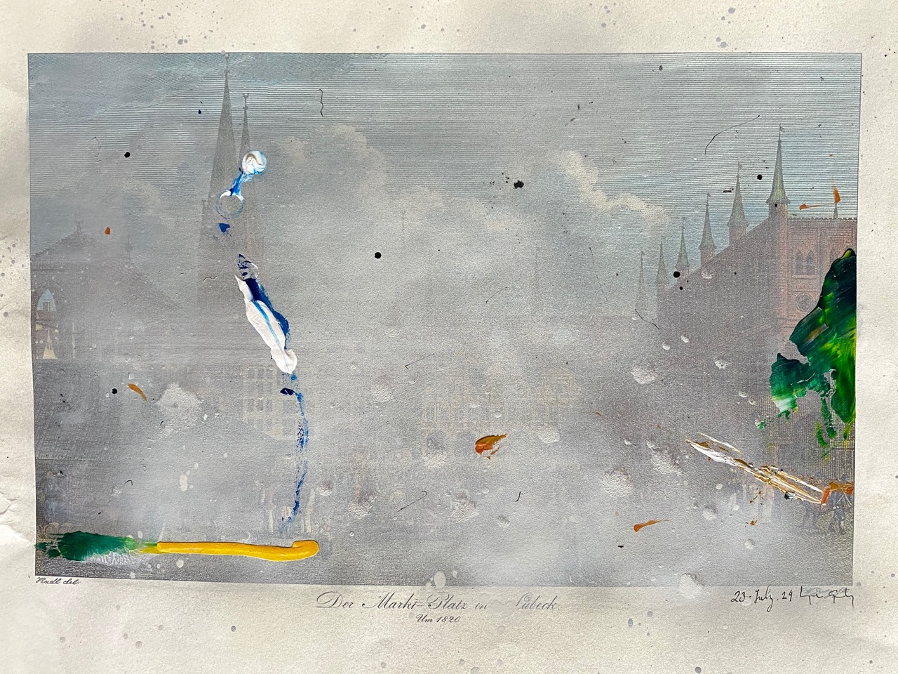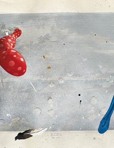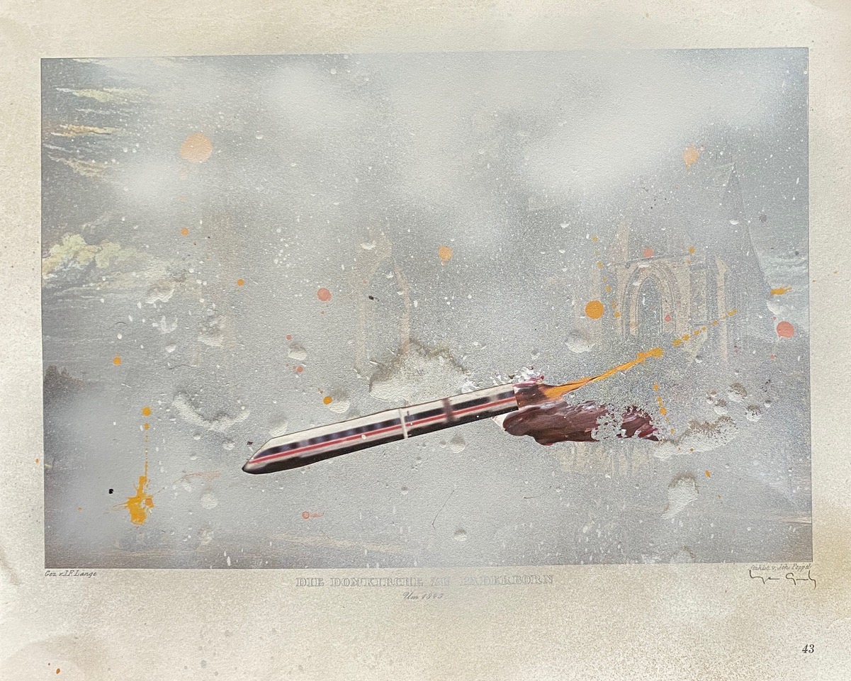 Mixed media on printed paper, 30 x 38 cm.